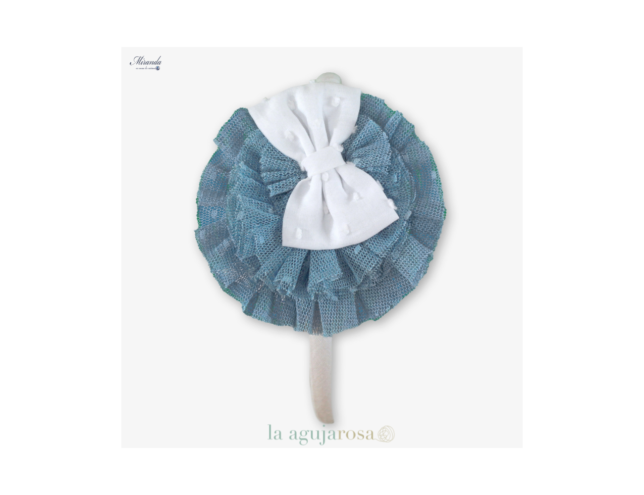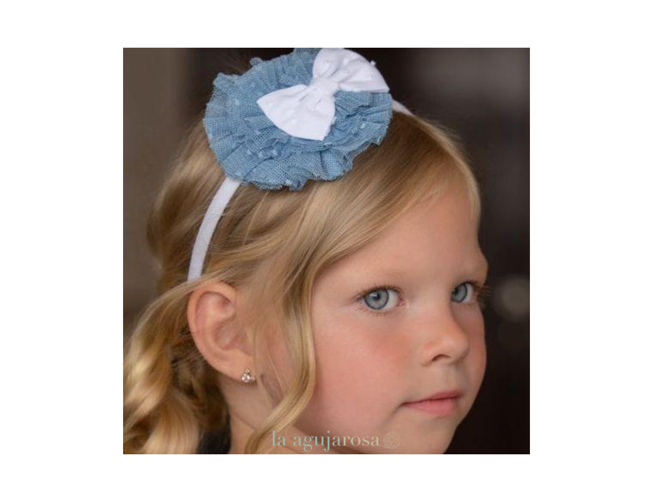 Bonita diadema con lazo en tonos blancos y azules.
