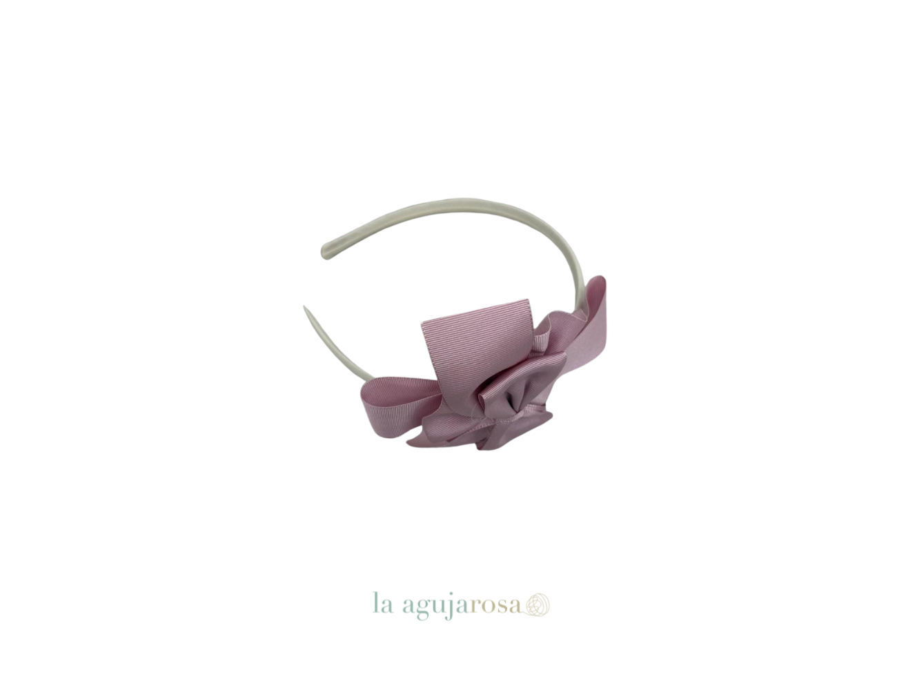 Bonita diadema con lazo en color rosa maquillaje de Miranda.