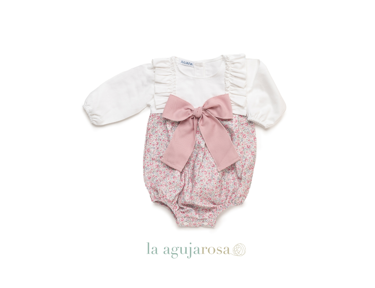 Pelele de flores con lazo de Juliana. Confeccionado en España con la mejor calidad de forma artesanal con fibras naturales, 100% algodón.