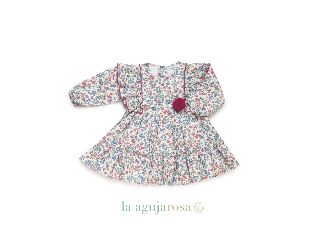 Vestido volantes flores de Juliana. Confeccionado en España con la mejor calidad de forma artesanal con fibras naturales, 100% algodón.