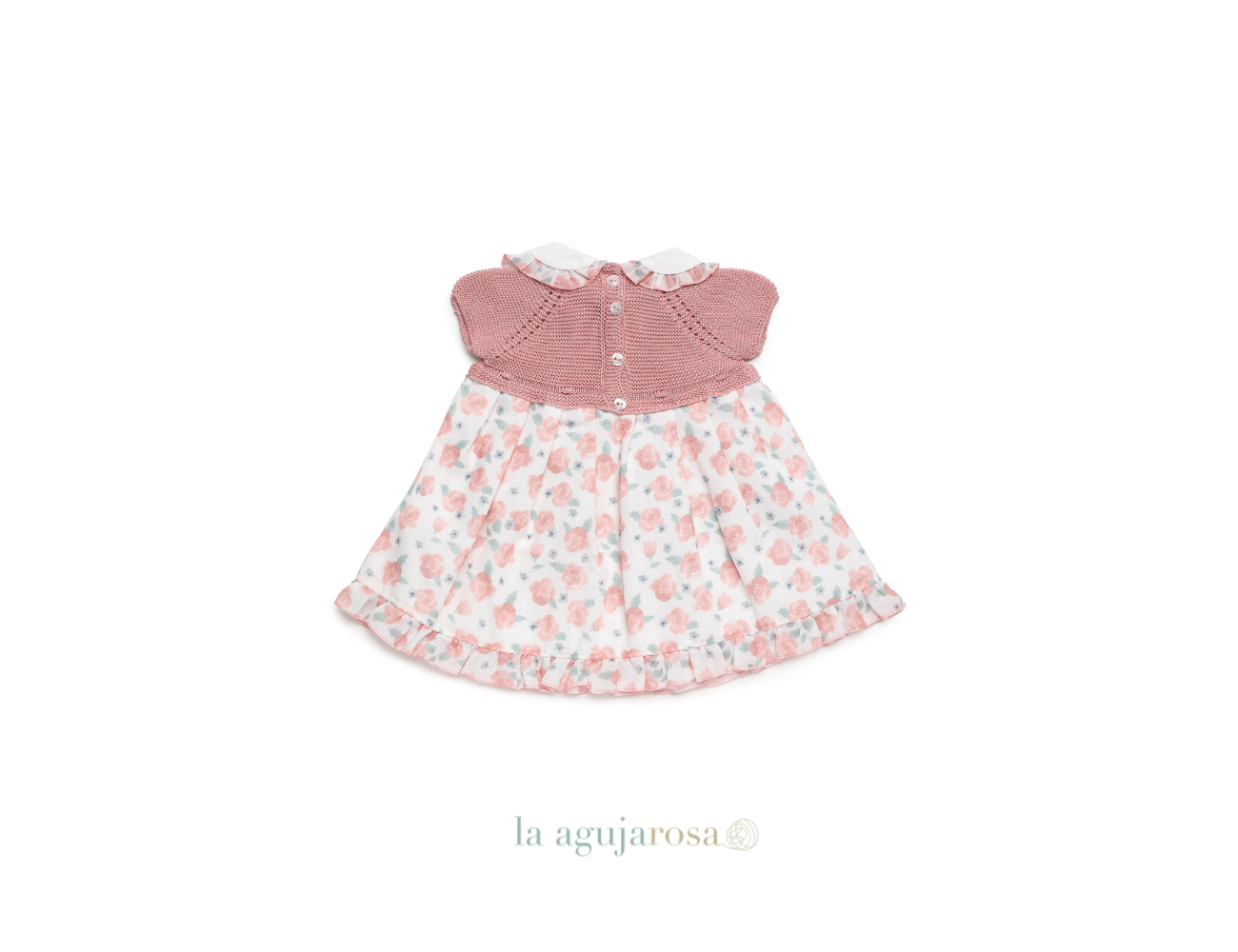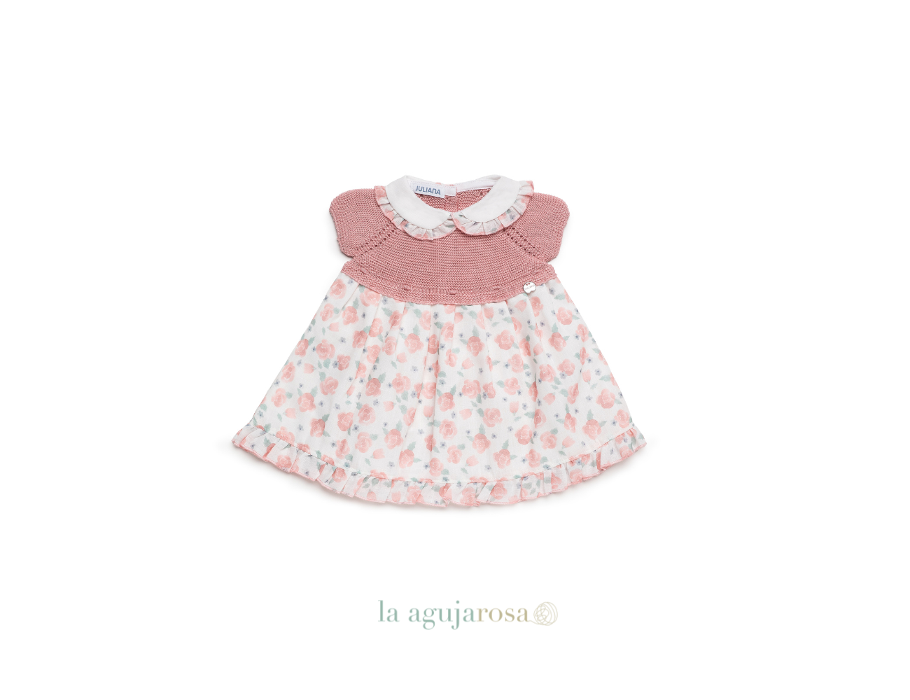 Vestido cuerpo de punto y tela de floresa de Juliana. Confeccionado en España con la mejor calidad de forma artesanal con fibras naturales, 100% algodón la tela 50% algodón 50% leacril el punto.