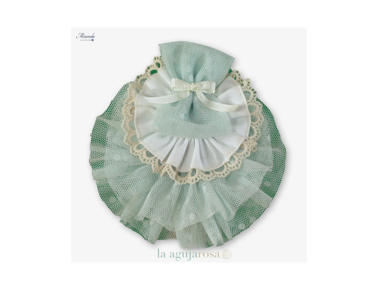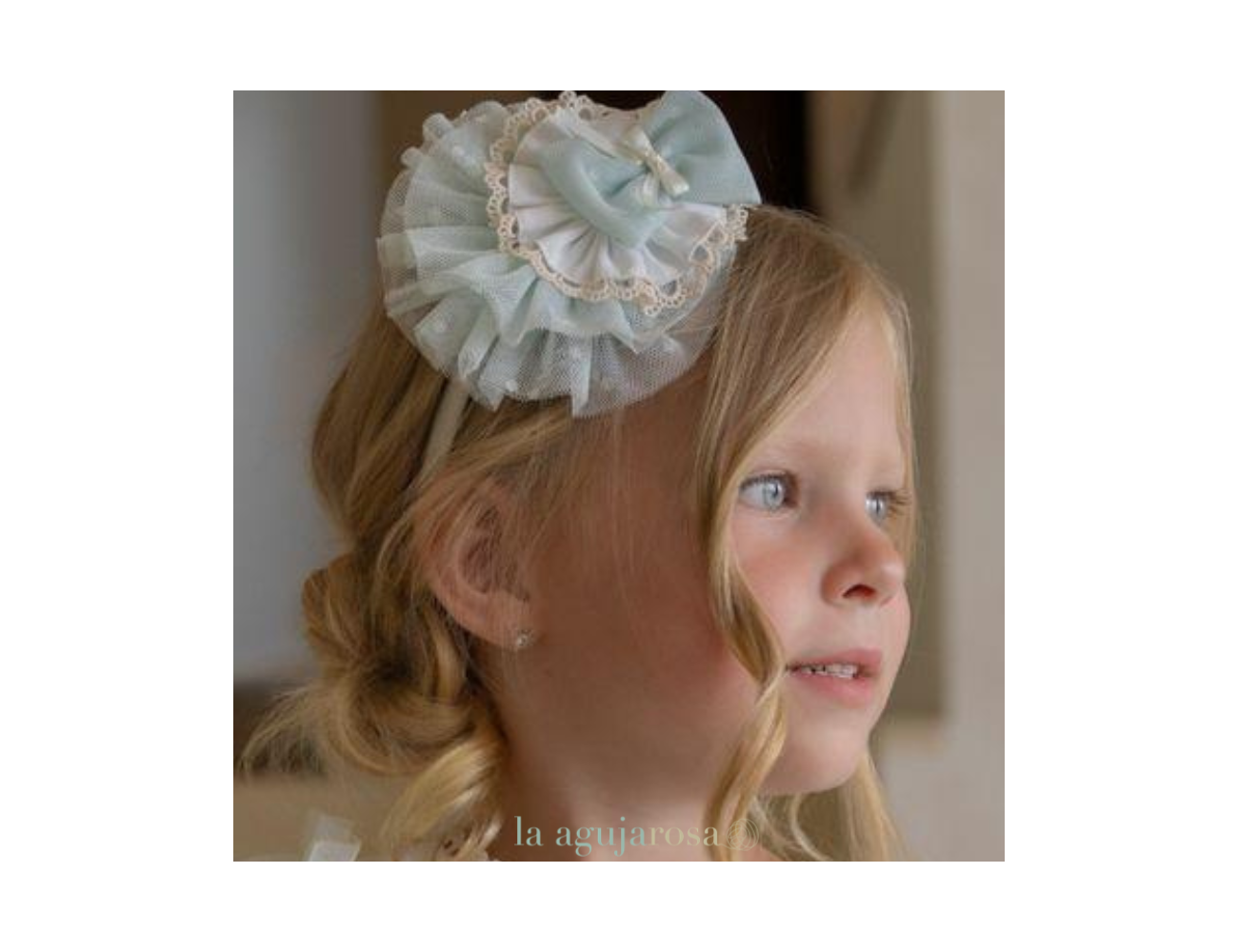 Bonita diadema con lazo en tonos blancos y verde agua.