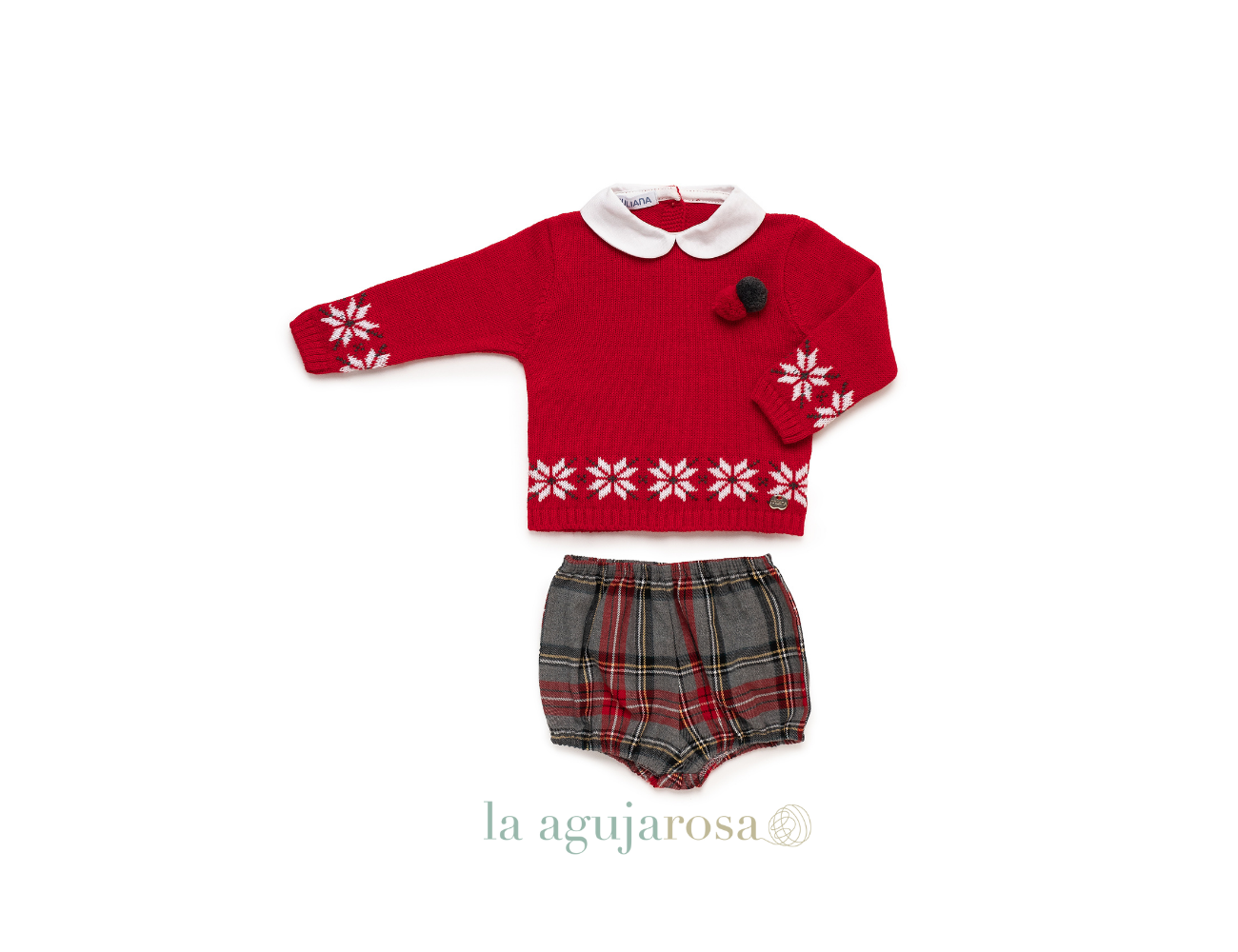 Conjunto pantalón cenefa de Juliana. Confeccionado en España con la mejor calidad de forma artesanal con fibras naturales, 50% leacril 50% algodón el punto y 100% algodón el pantalón.