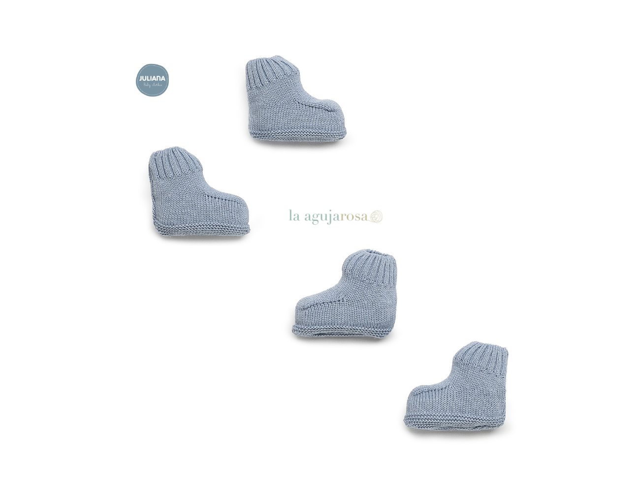 Bota de punto lines en blanco gris y azul cielo de Juliana. Confeccionado de forma artesanal con fibras naturales, 50% acrílico 50% algodón de tacto fresco, delicado y dulce.