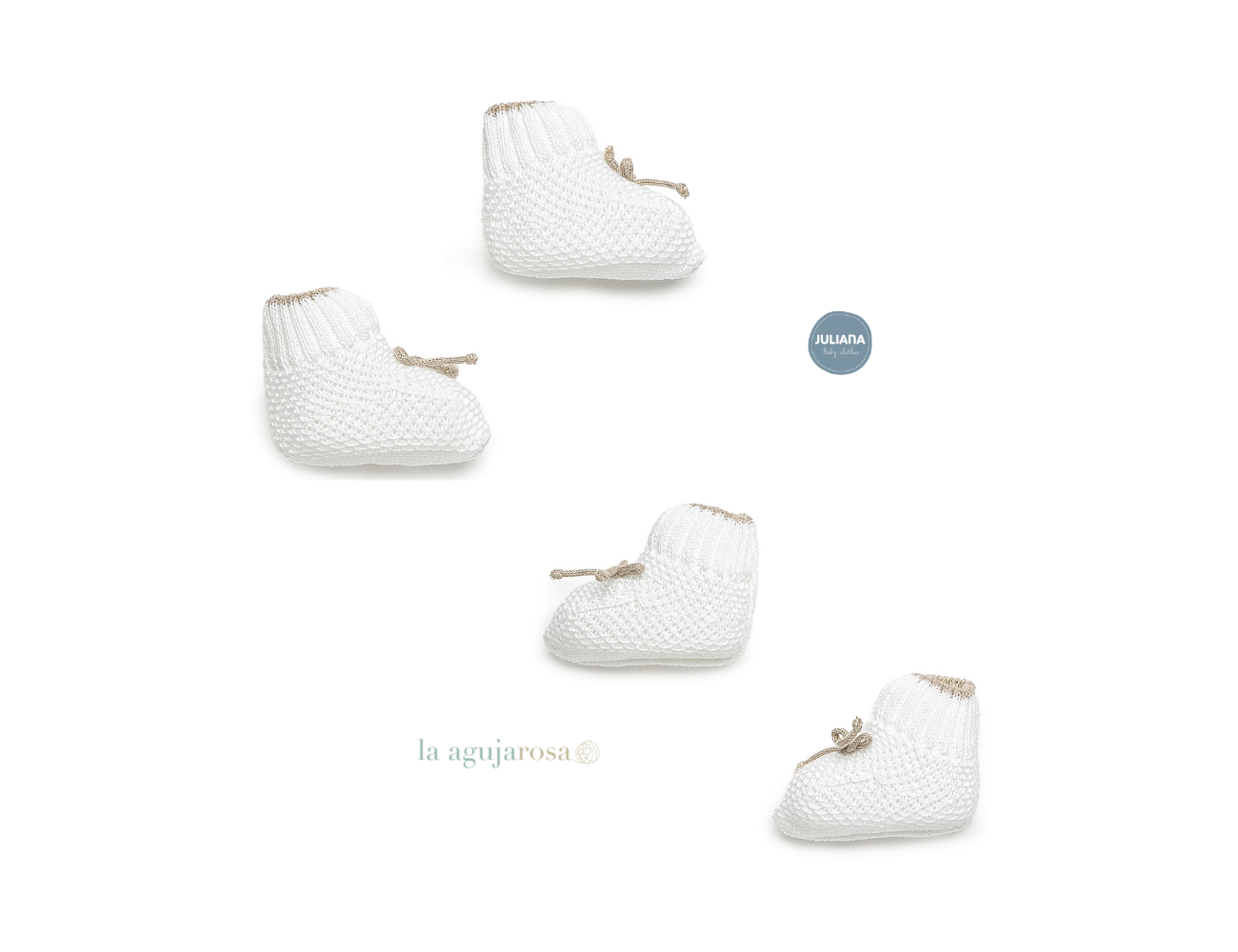Bota de punto recogidas lazo en blanco/beige de Juliana. Confeccionado de forma artesanal con fibras naturales, 50% acrílico 50% algodón de tacto fresco, delicado y dulce.