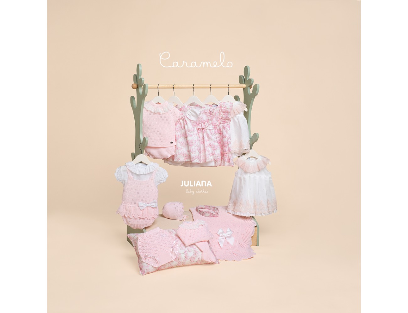 Braga de punto color rosa bebé de Juliana. Confeccionado en España con la mejor calidad de forma artesanal con fibras naturales, 50% algodón 50%