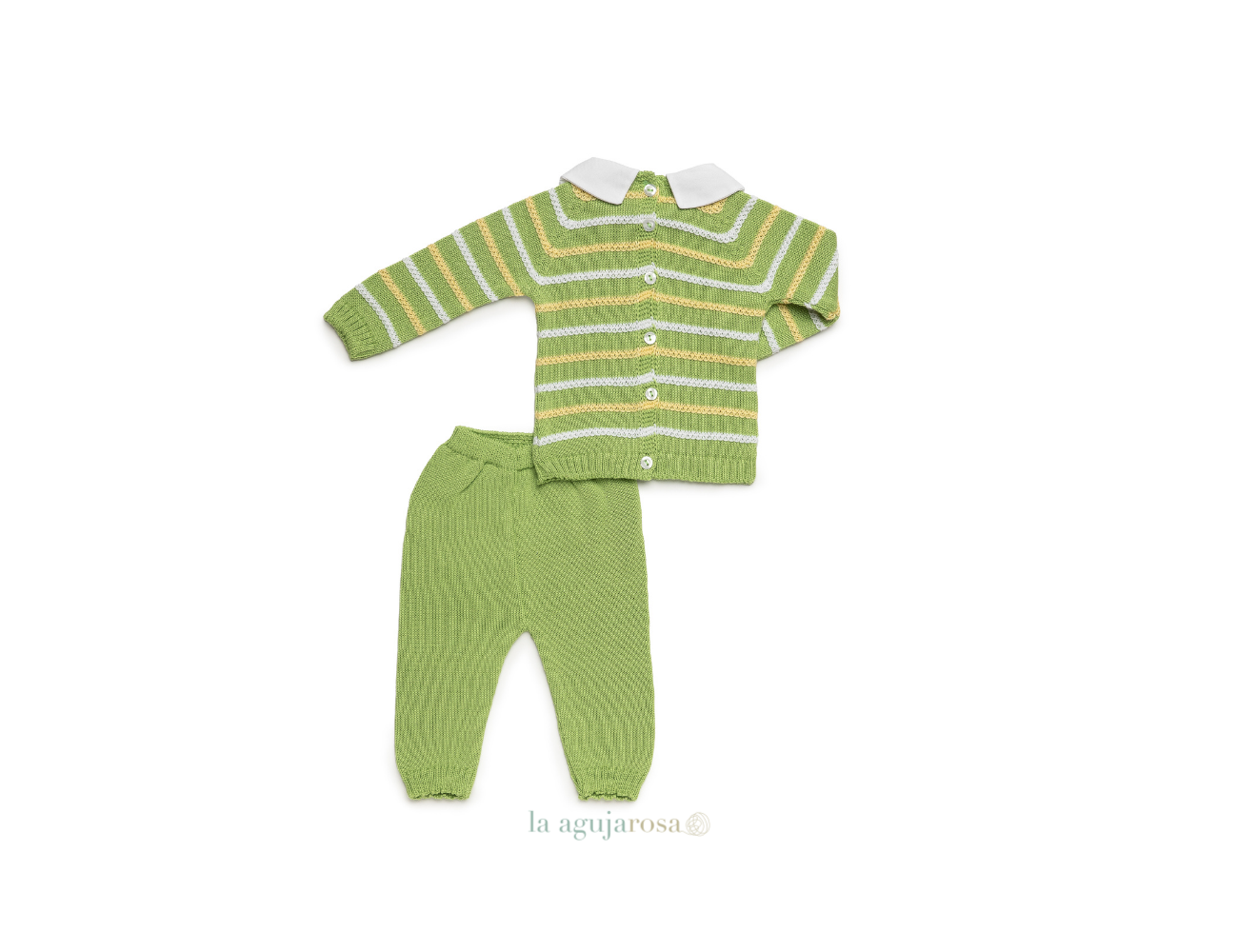 Conjunto de punto de 2 piezas de Juliana. Confeccionado de forma artesanal con fibras naturales, 50% acrílico 50% algodón de tacto fresco, delicado y dulce.
