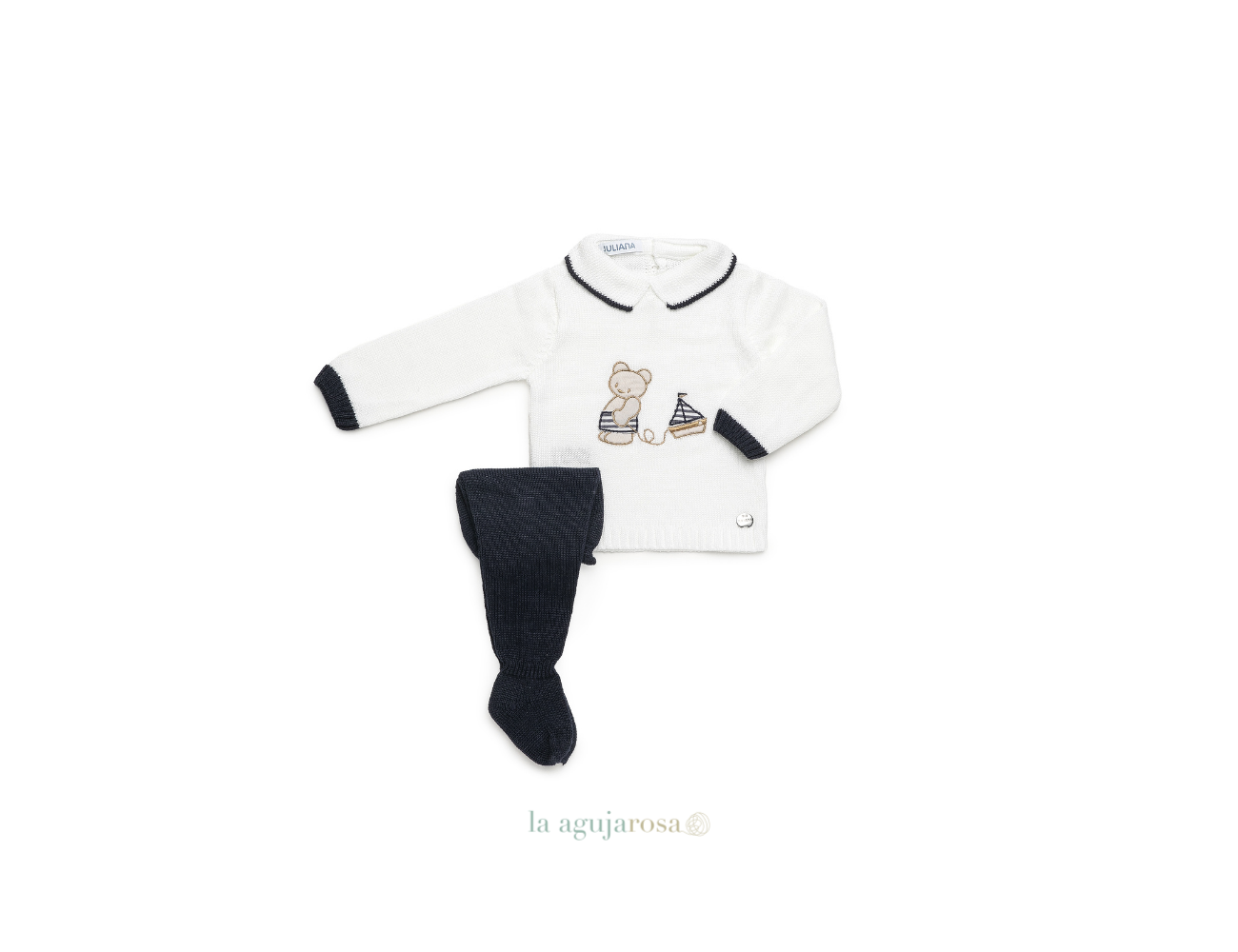 Conjunto de 2 piezas bordado oso de Juliana. Confeccionado de forma artesanal con fibras naturales, 50% leacril 50% algodón de tacto fresco, delicado y dulce.