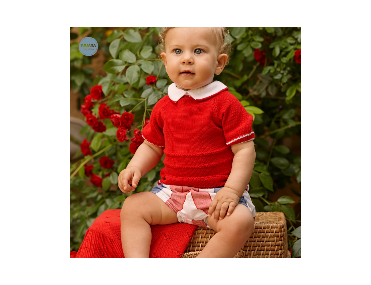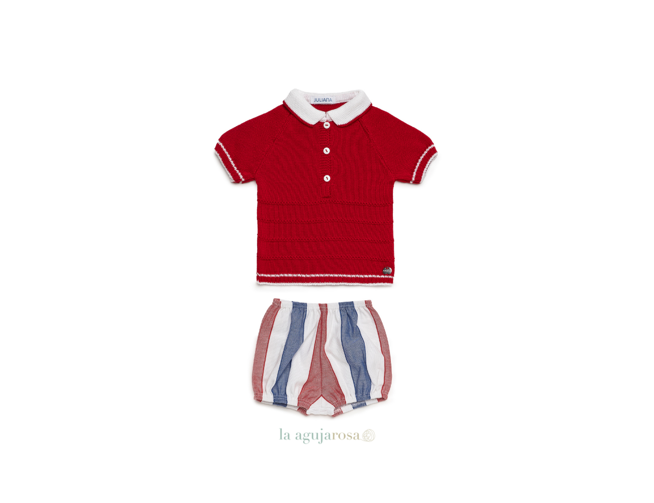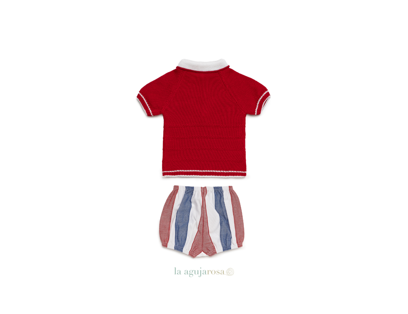 Conjunto de pantalón tela rayada de Juliana. Confeccionado en España con la mejor calidad de forma artesanal con fibras naturales, 100% algodón la tela 50% algodón 50% leacril el punto.