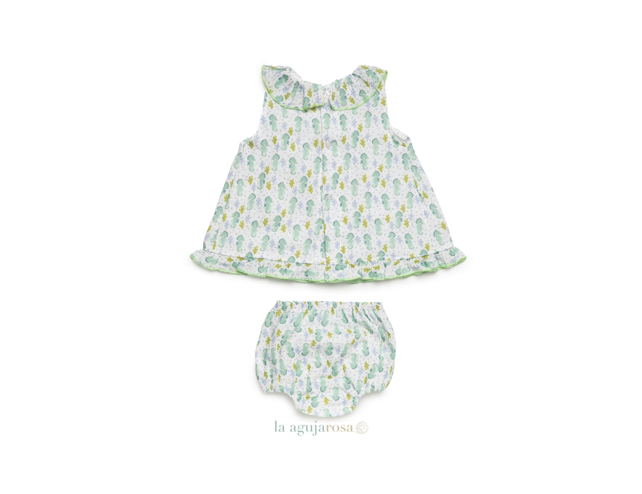 Jesusito con braga en tonos lima de Juliana. Confeccionado en España con la mejor calidad de forma artesanal con fibras naturales, 100% algodón.