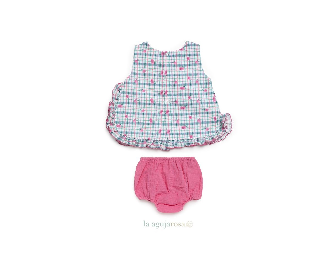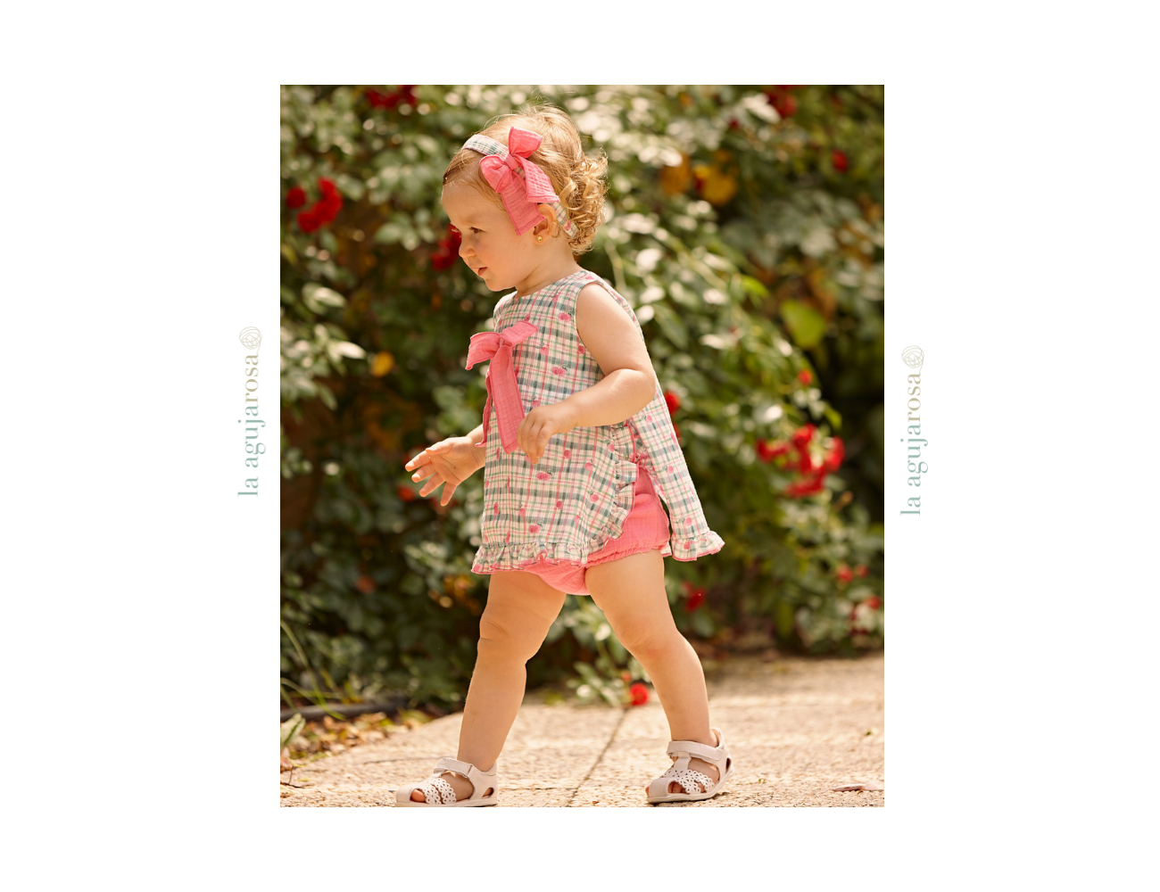 Jesusito con braga en tonos fresa de Juliana. Confeccionado en España con la mejor calidad de forma artesanal con fibras naturales, 100% algodón la tela 50% algodón 50% leacril el punto.