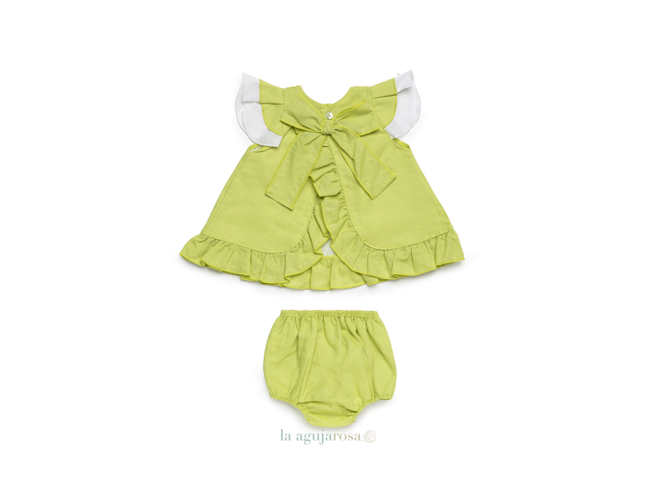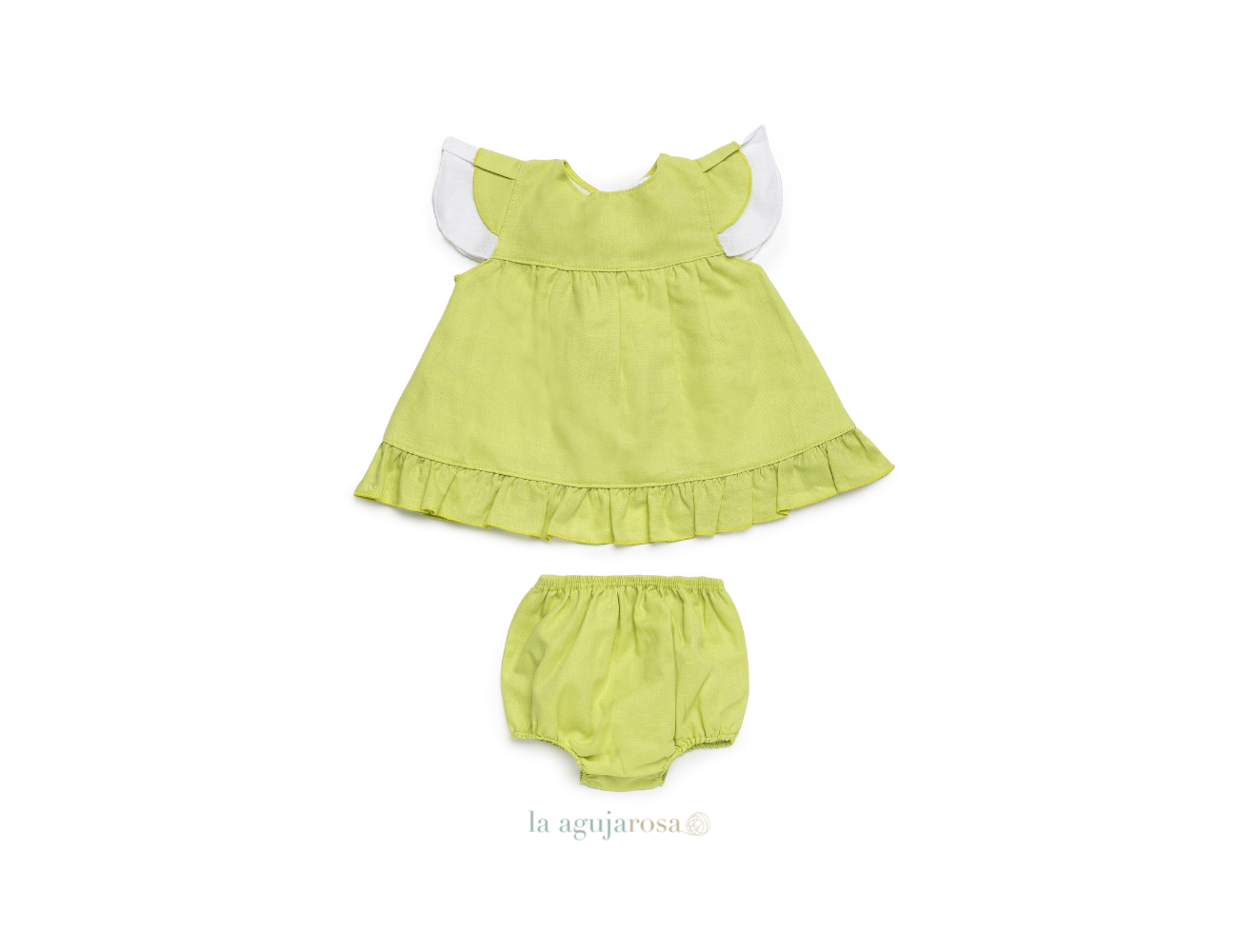 Jesusito en tonos lima de Juliana. Confeccionado en España con la mejor calidad de forma artesanal con fibras naturales, 50% lino 50% algodón.