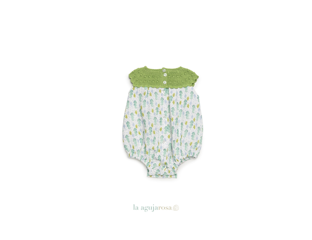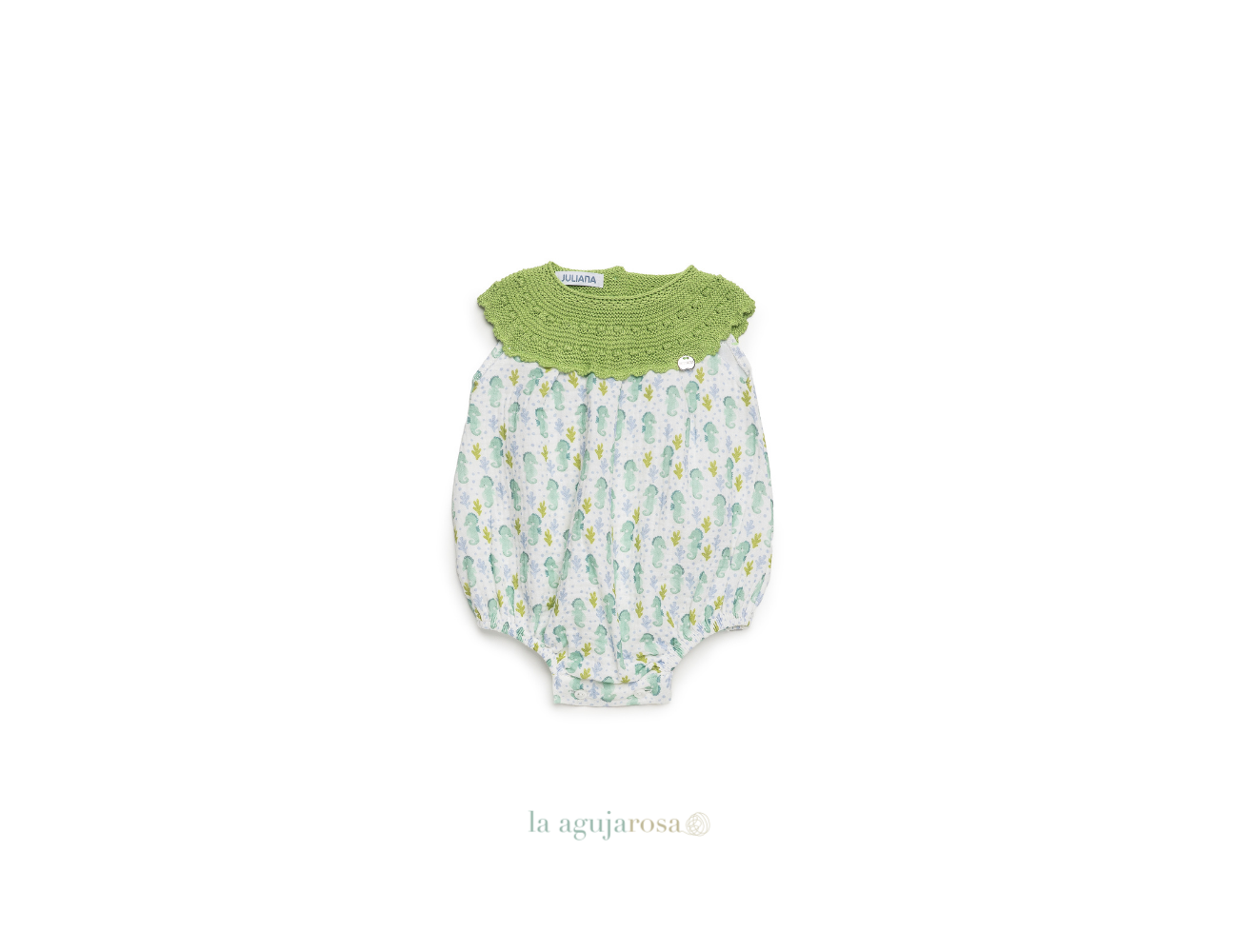 Pelele cuerpo de punto en tonos lima de Juliana. Confeccionado en España con la mejor calidad de forma artesanal con fibras naturales, 100% algodón la tela 50% algodón 50% leacril el punto.