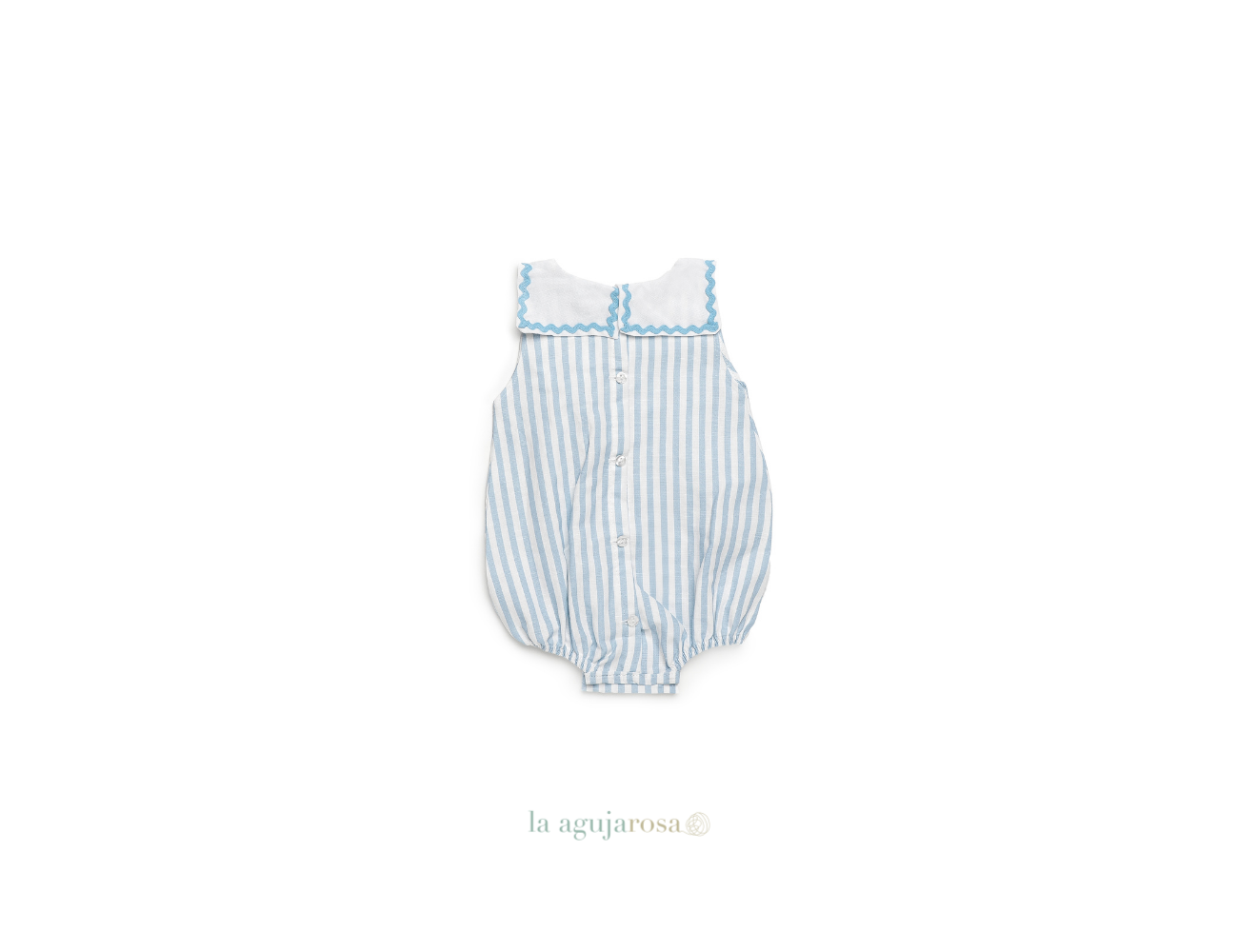 Pelele con babero de tela rayada de Juliana. Confeccionado en España con la mejor calidad de forma artesanal con fibras naturales, 100% algodón.