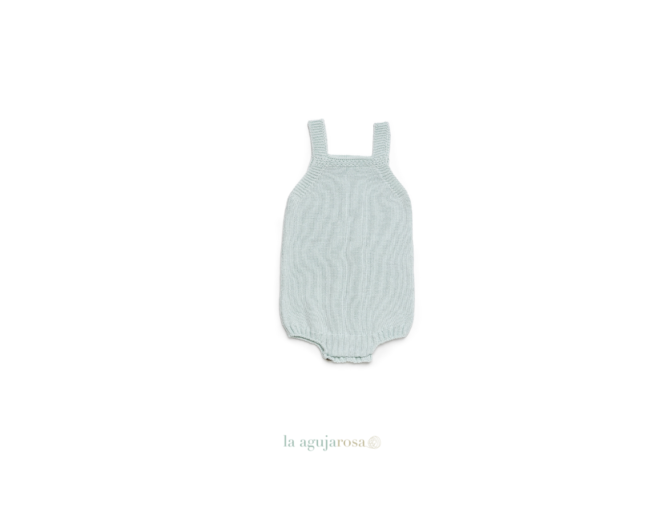Peto de punto en verde mar de Juliana. Confeccionado de forma artesanal con fibras naturales, 50% acrílico 50% algodón de tacto fresco, delicado y dulce.