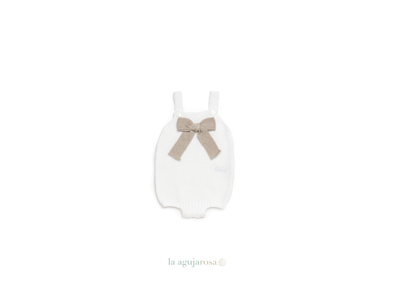 Peto de punto con lazo de Juliana. Confeccionado en España con la mejor calidad de forma artesanal con fibras naturales 50% algodón 50% leacril.