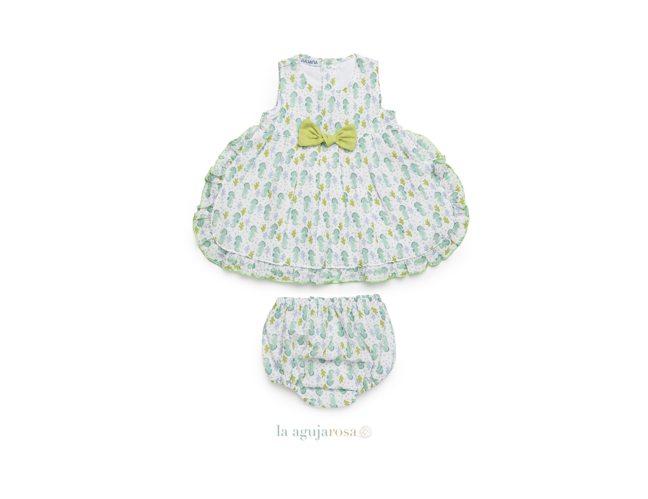 Vestido cuerpo de punto en tonos lima de Juliana. Confeccionado en España con la mejor calidad de forma artesanal con fibras naturales, 100% algodón.