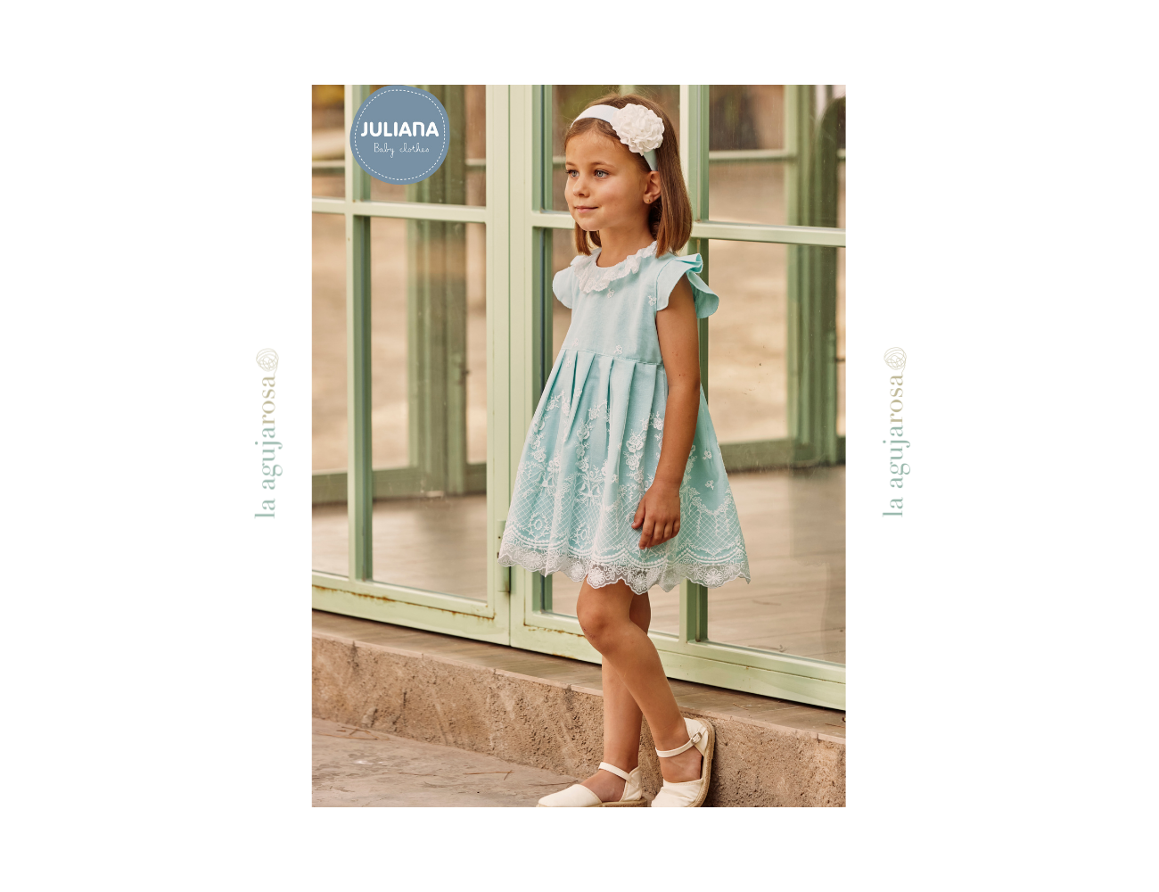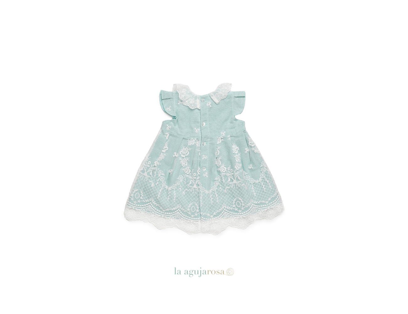 Vestido cortado cintura de encaje de Juliana. Confeccionado en España con la mejor calidad de forma artesanal con fibras naturales, 50% lino 50% algodón.