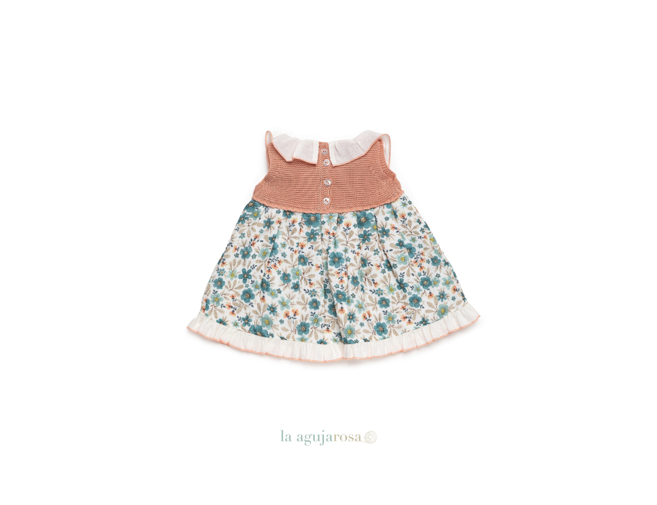 Vestido cuerpo de punto y tela de flores de Juliana. Confeccionado en España con la mejor calidad de forma artesanal con fibras naturales, 100% algodón la tela 50% algodón 50% leacril el punto.