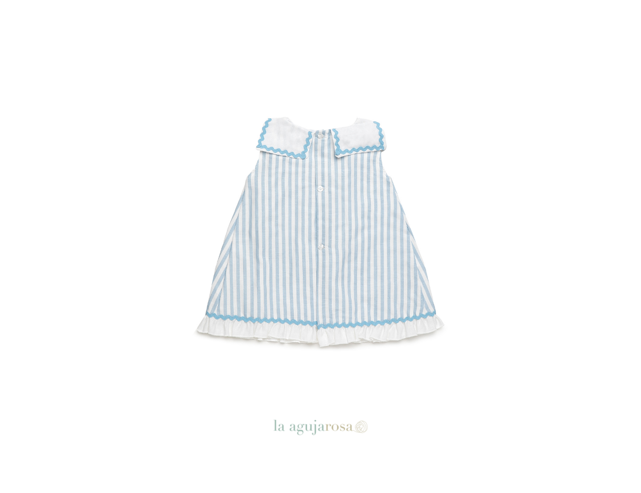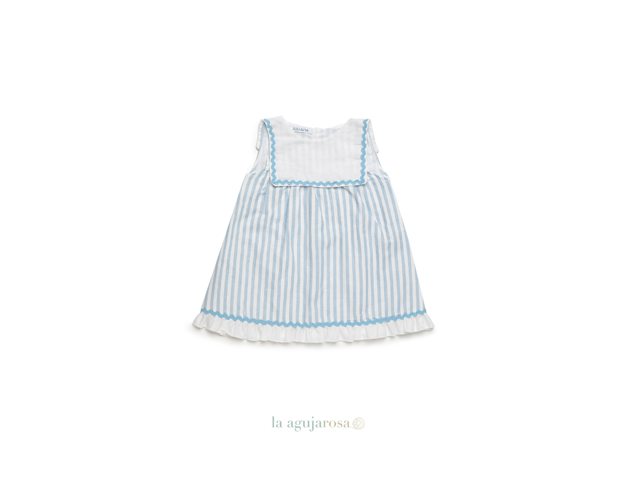 vestido de tela rayada con babero de Juliana. Confeccionado en España con la mejor calidad de forma artesanal con fibras naturales, 100% algodón .