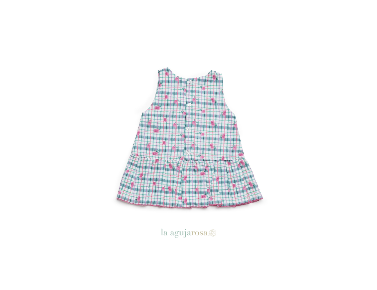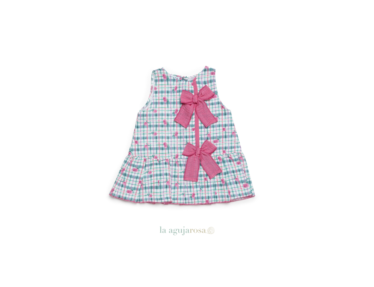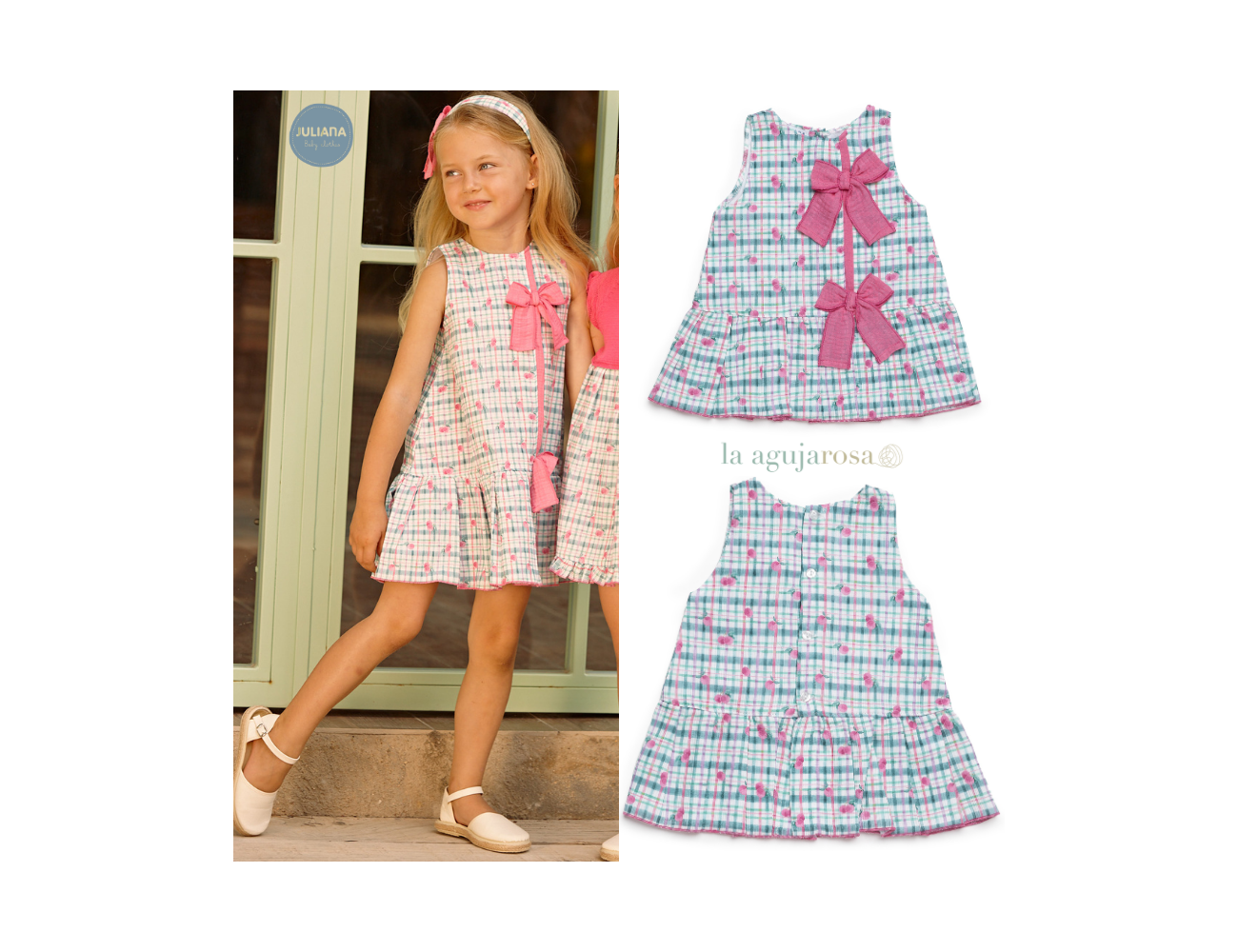Vestido de talle bajo en tonos fresa de Juliana. Confeccionado en España con la mejor calidad de forma artesanal con fibras naturales, 100% algodón la tela 50% algodón 50% leacril el punto.