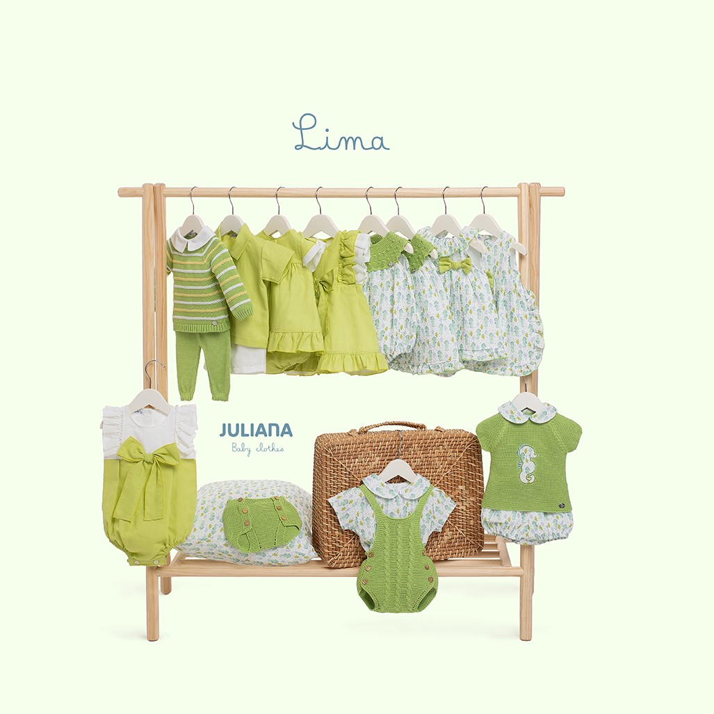 Colección de Juliana de tela de tela y punto en verde lima. Disponible hasta talla 6años.
