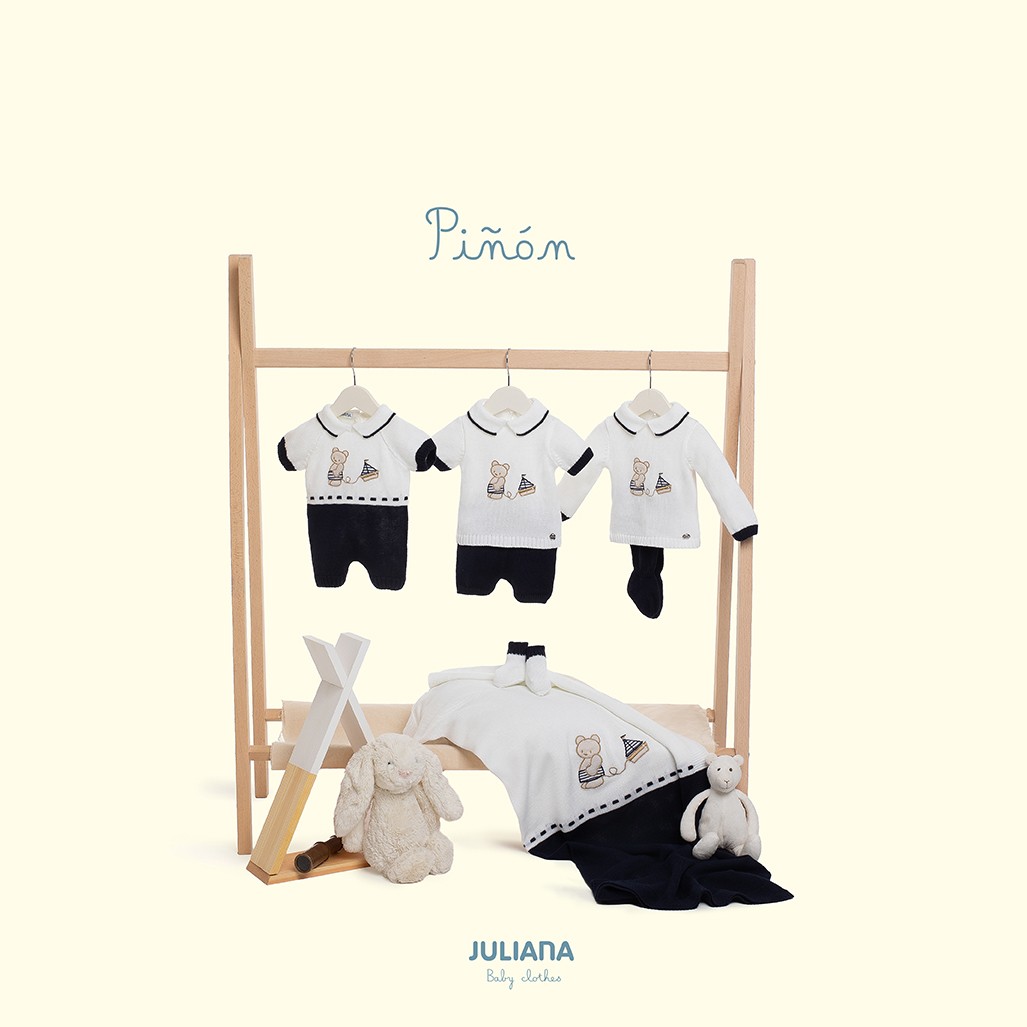 Colección de Juliana marinera con bordado de Juliana. Disponible hasta talla 48 meses.
